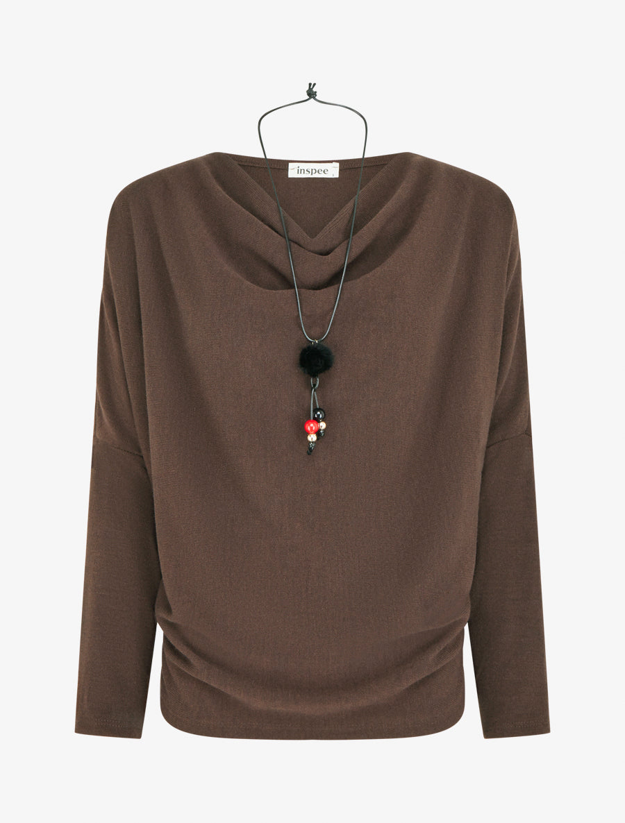 Fijn effen truitje met watervalkraag - Bruin