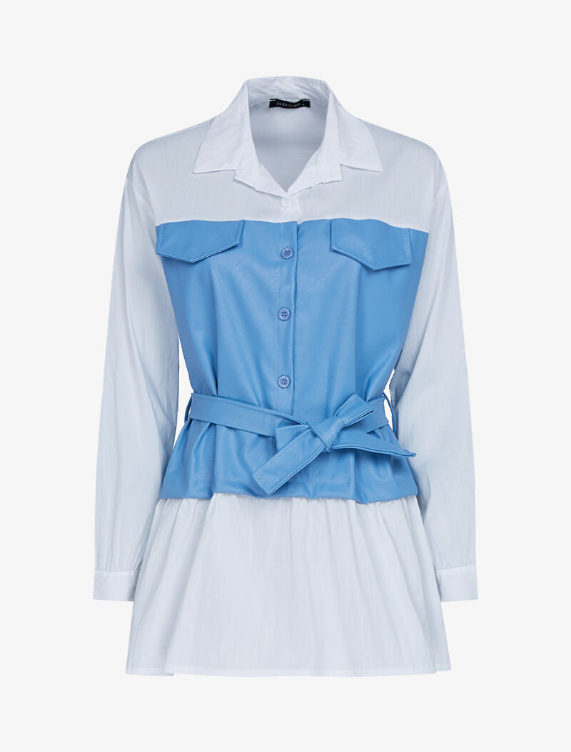 Tuniek in overhemdstijl met imitatieborst - lichtblauw